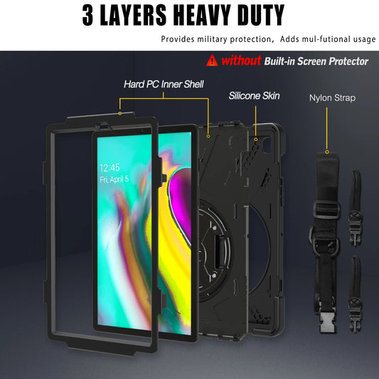 Rotating Hybrid Case For Samsung Galaxy Tab S5E SM-T720 T725 A 10.5 T590 T595 10.1 T510 T515 Rugged Cover Hand Shoulder Strap