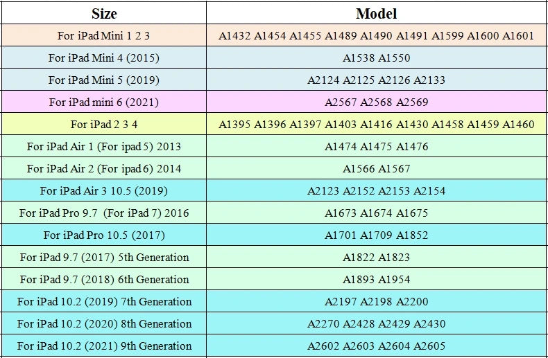 For Model 6: For iPad 10.2 2019 2020 2021 (7th 8th 9th Generation)