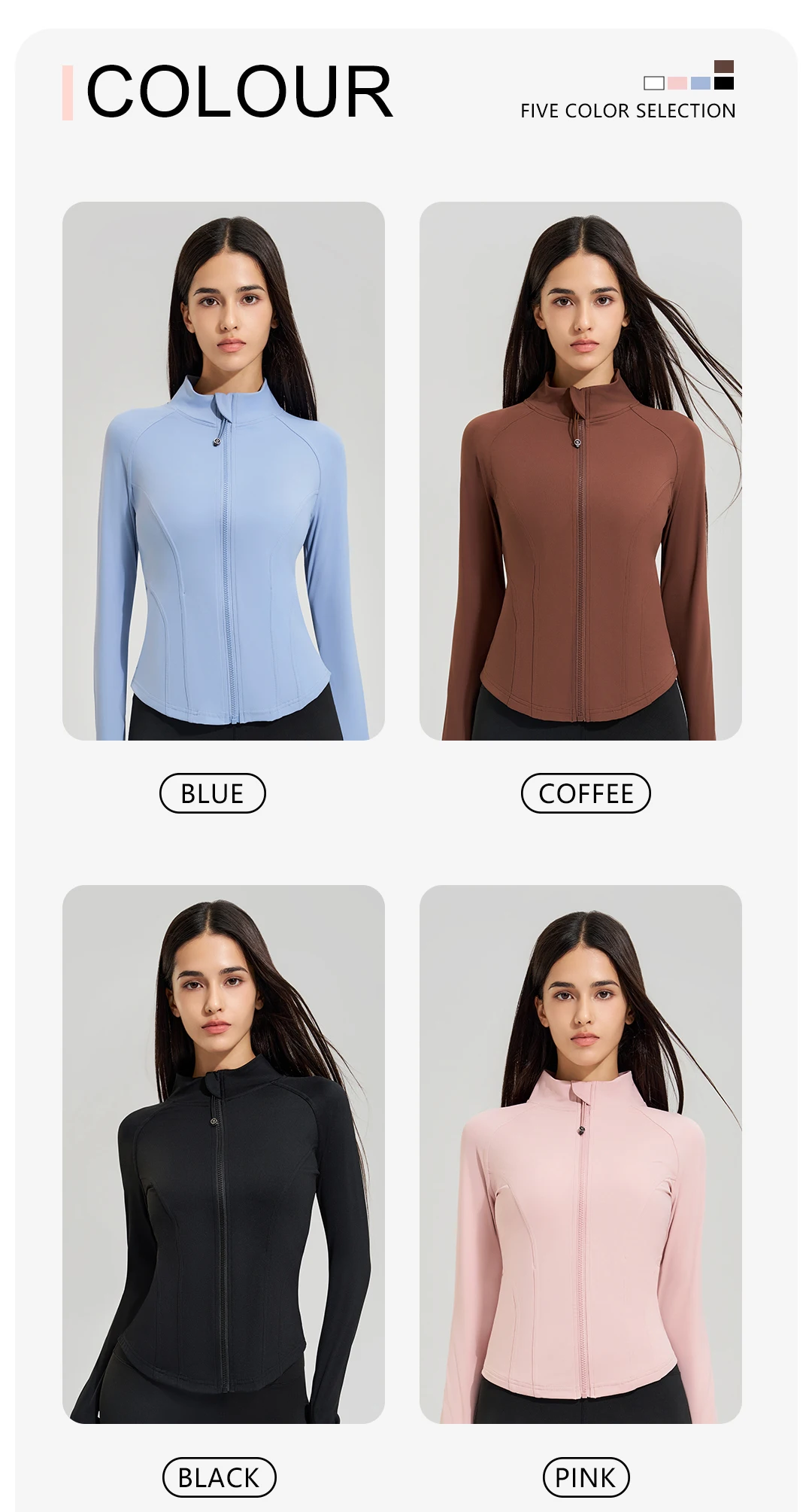 Exercise jacket yoga fitness clothing long-sleeved women four seasons running fast dry tight tops gym yoga jacket