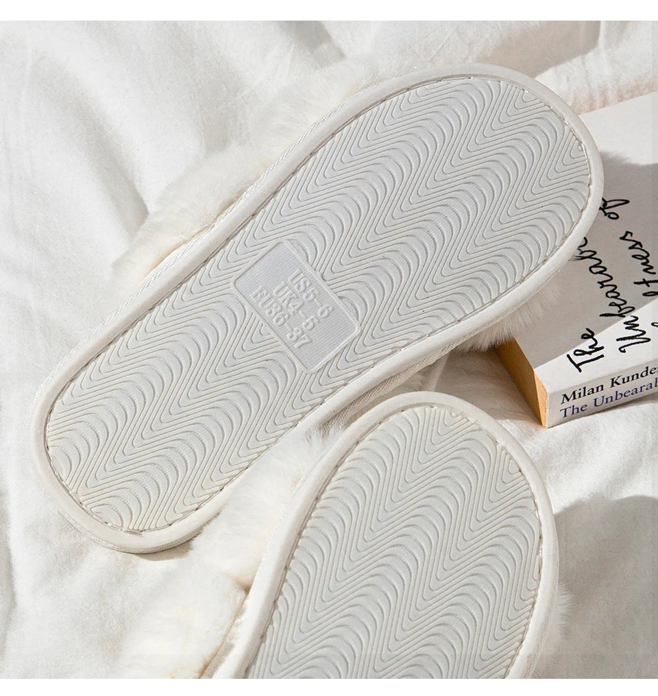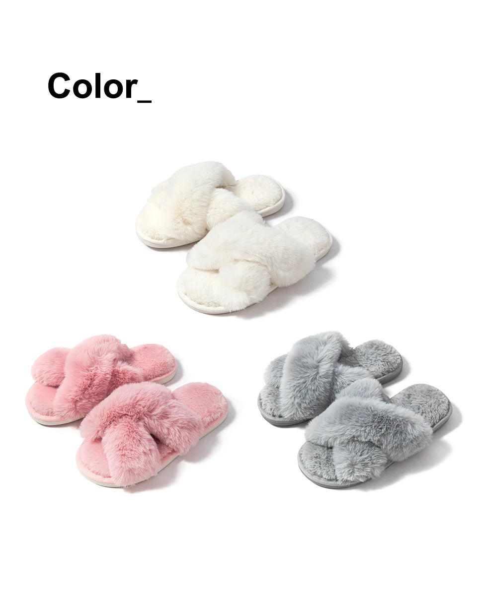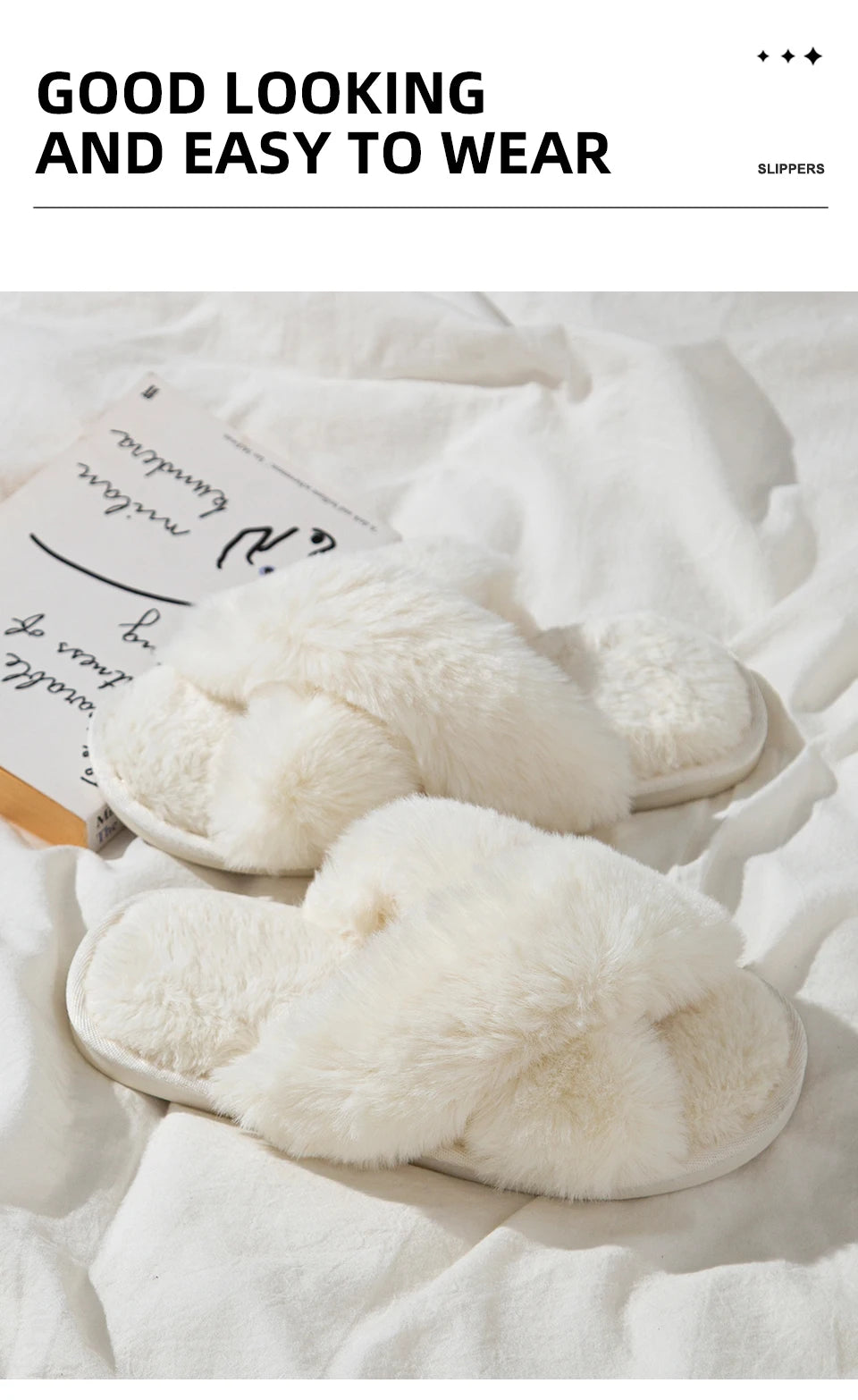 Feslishoet Women Fuzzy Slippers Cross Band Soft Plush Cozy House Shoes Furry Open Toe Indoor Outdoor Slip Warm Anti Skid Sole