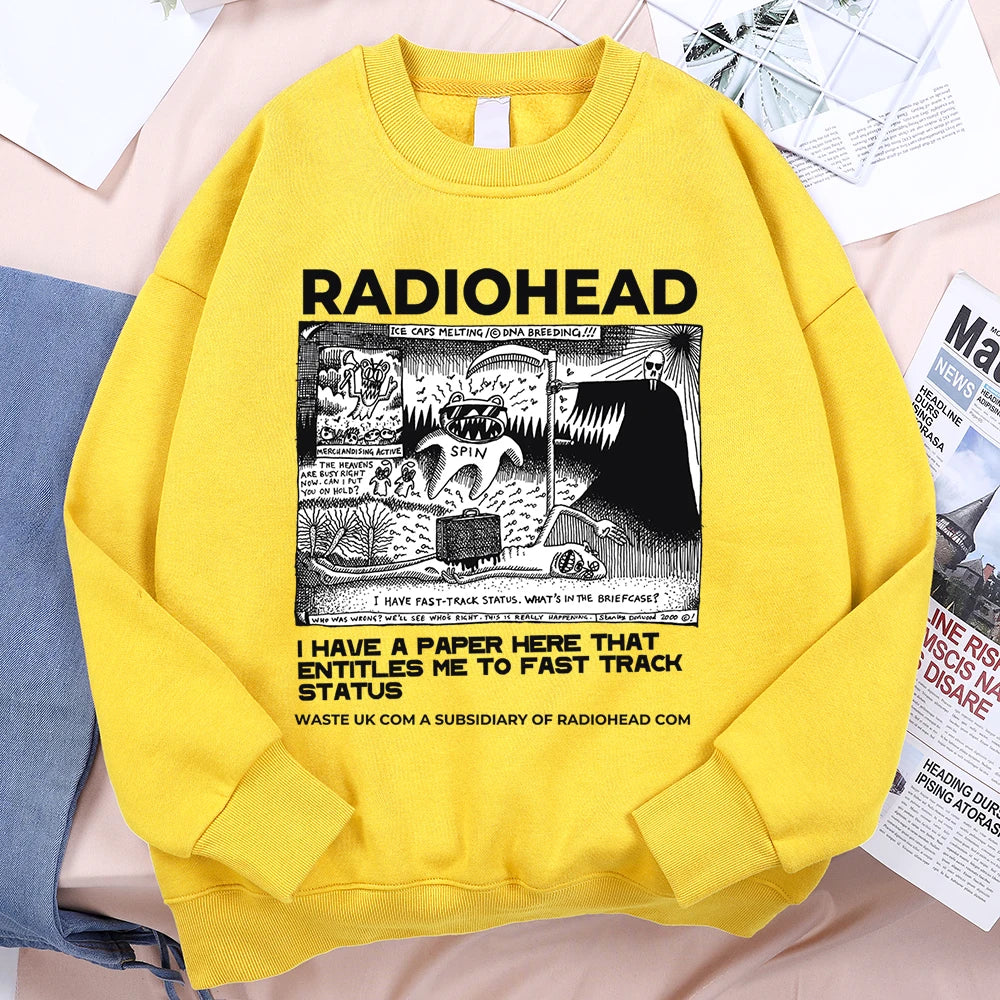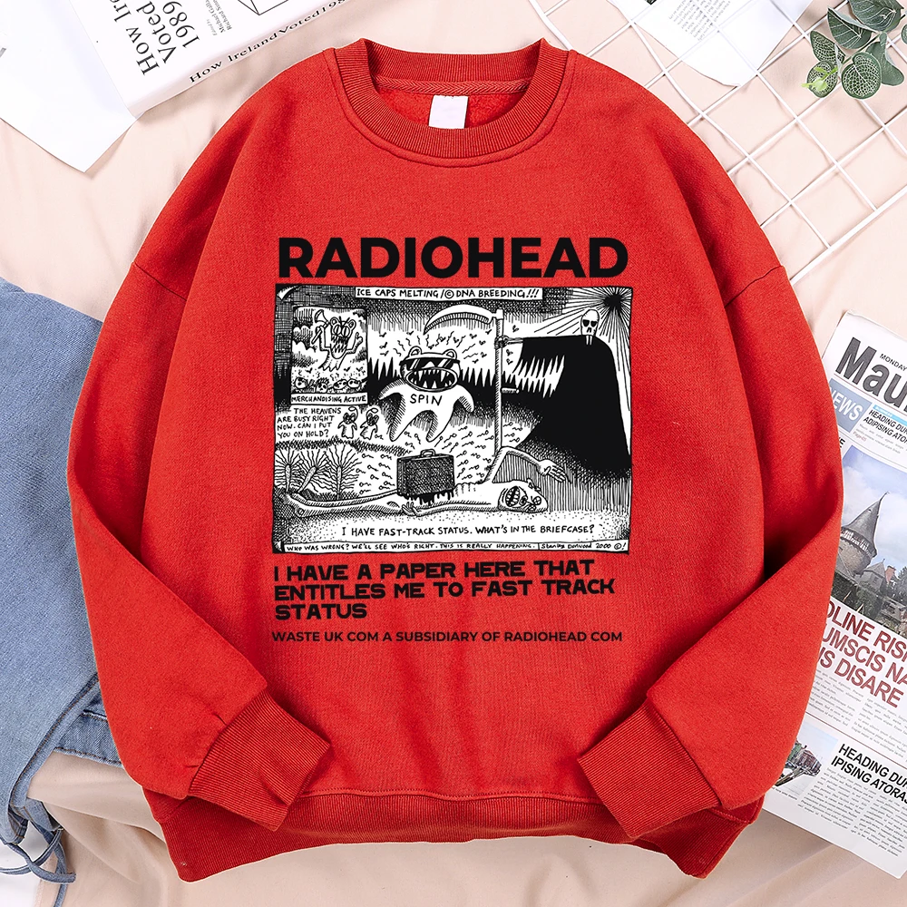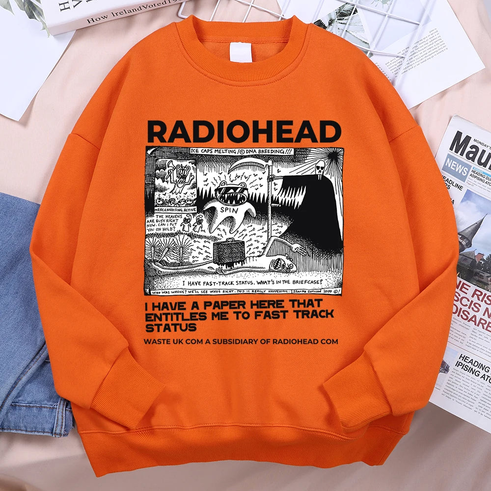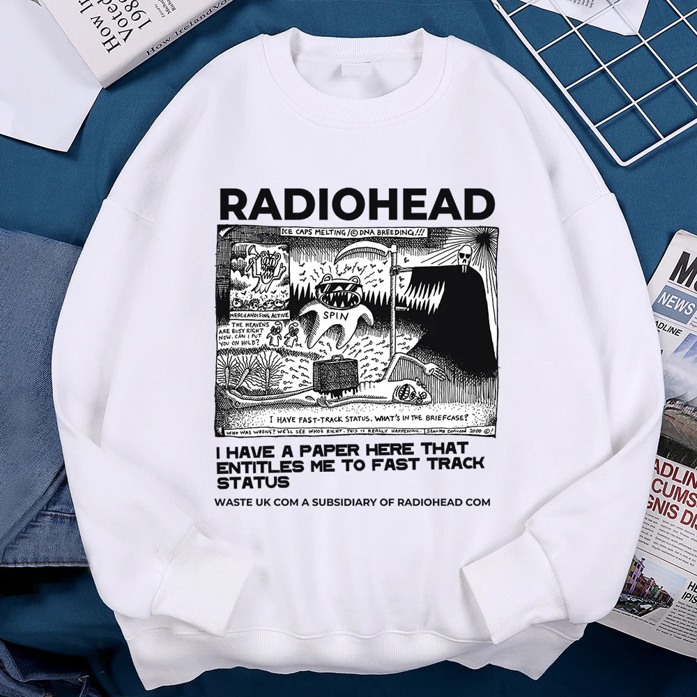 Funny Radiohead Print Clothing Men Women Hip Hop Loose Hoody Vintage Pullover Sweatshirt Autumn Fleece Fleece Pullover Couple