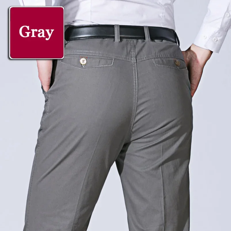 Men's Summer Thin Pants Classic Casual 100% Cotton Business Fashion Stretch Solid Comfortable Elastic Straigh Trousers KOACUS
