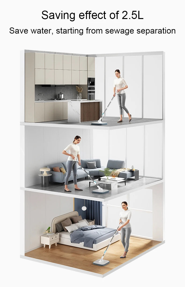 Press the mop gently to flush and spray the mop, and the dirty water will be diverted to the sewage area