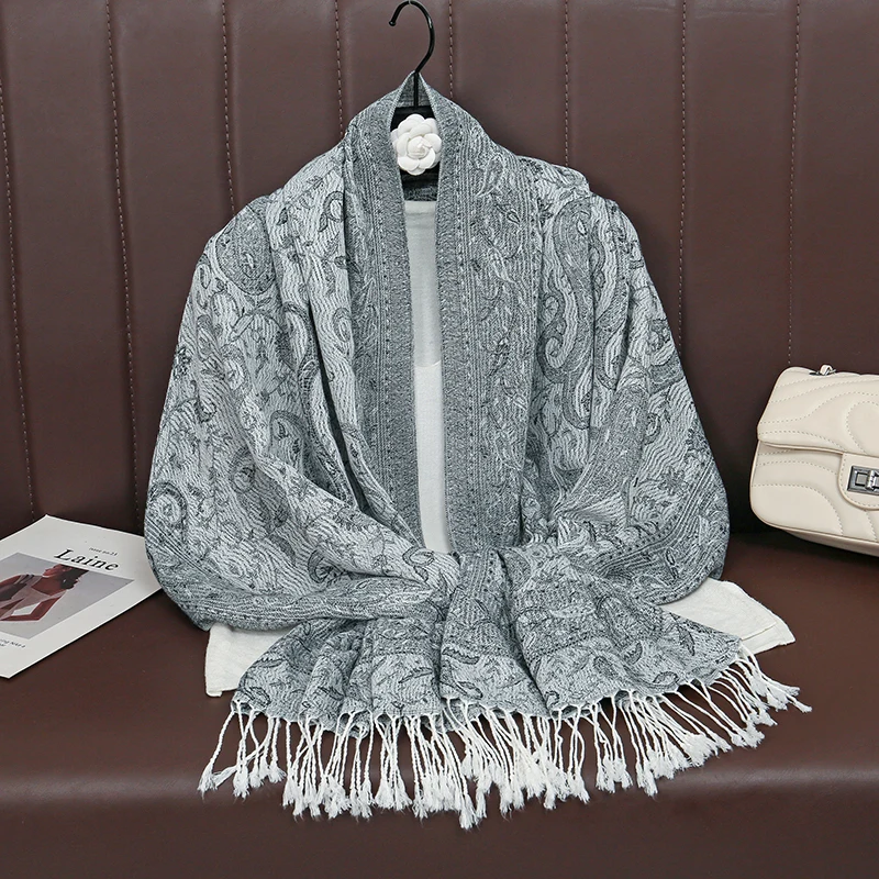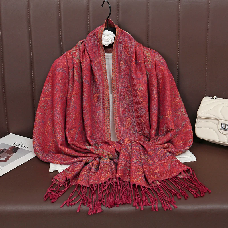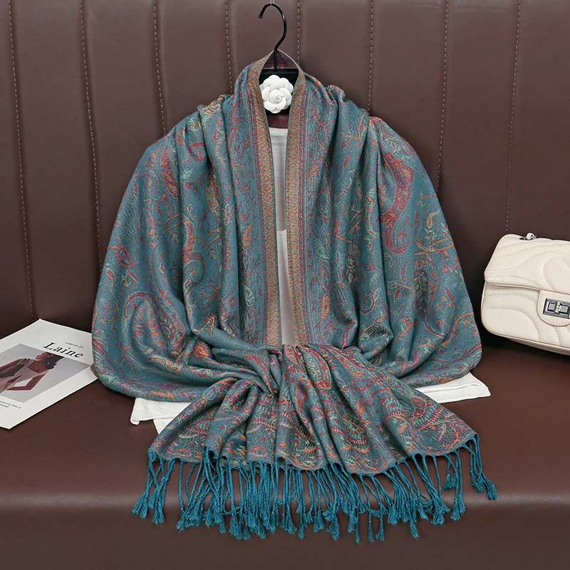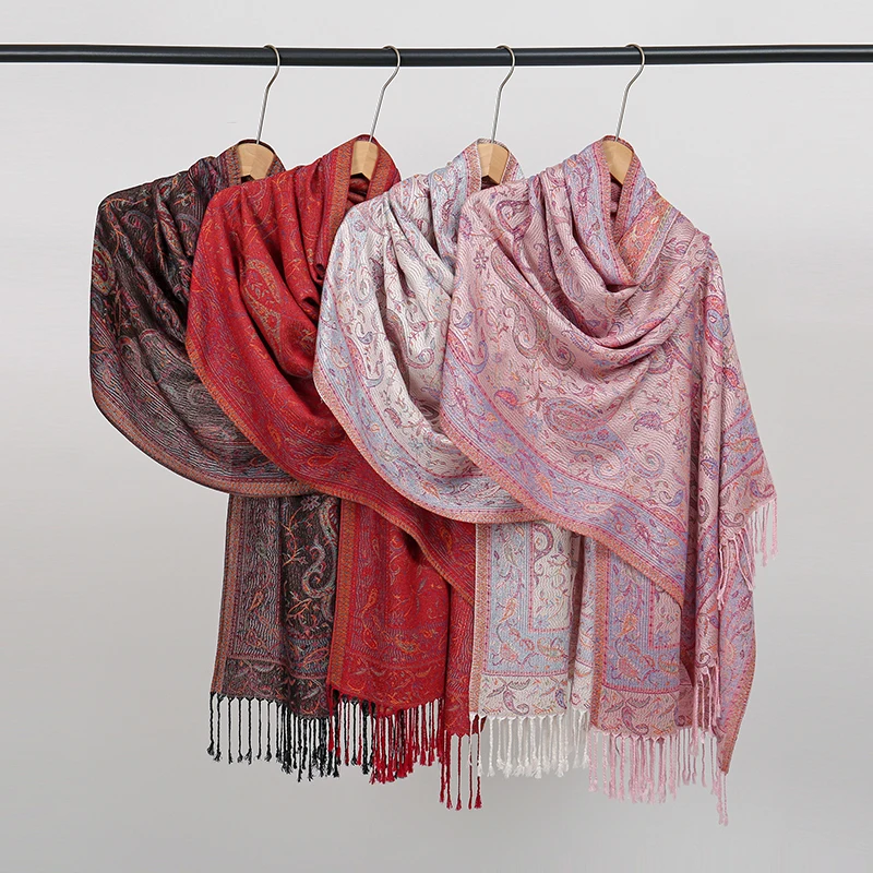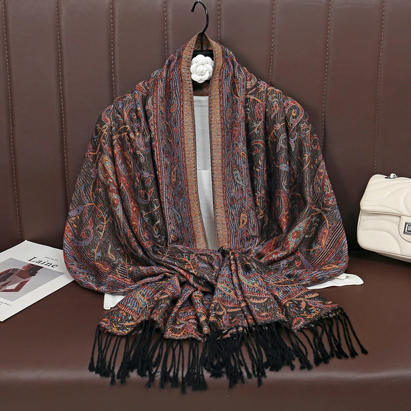 Retro Jacquard Paisley Tassels Hijab Scarf Cotton Viscose Women Muslim Hijab Shawls Big Size Long Wraps Ladies Fashion Headscarf