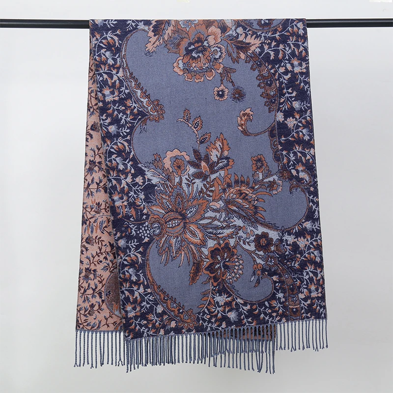 Winter Female Scarf Cashmere Shawls Wraps Women Floral Long Hijab Stoles Pashmina Bufanda Tassel Autumn Lady Headband 2022