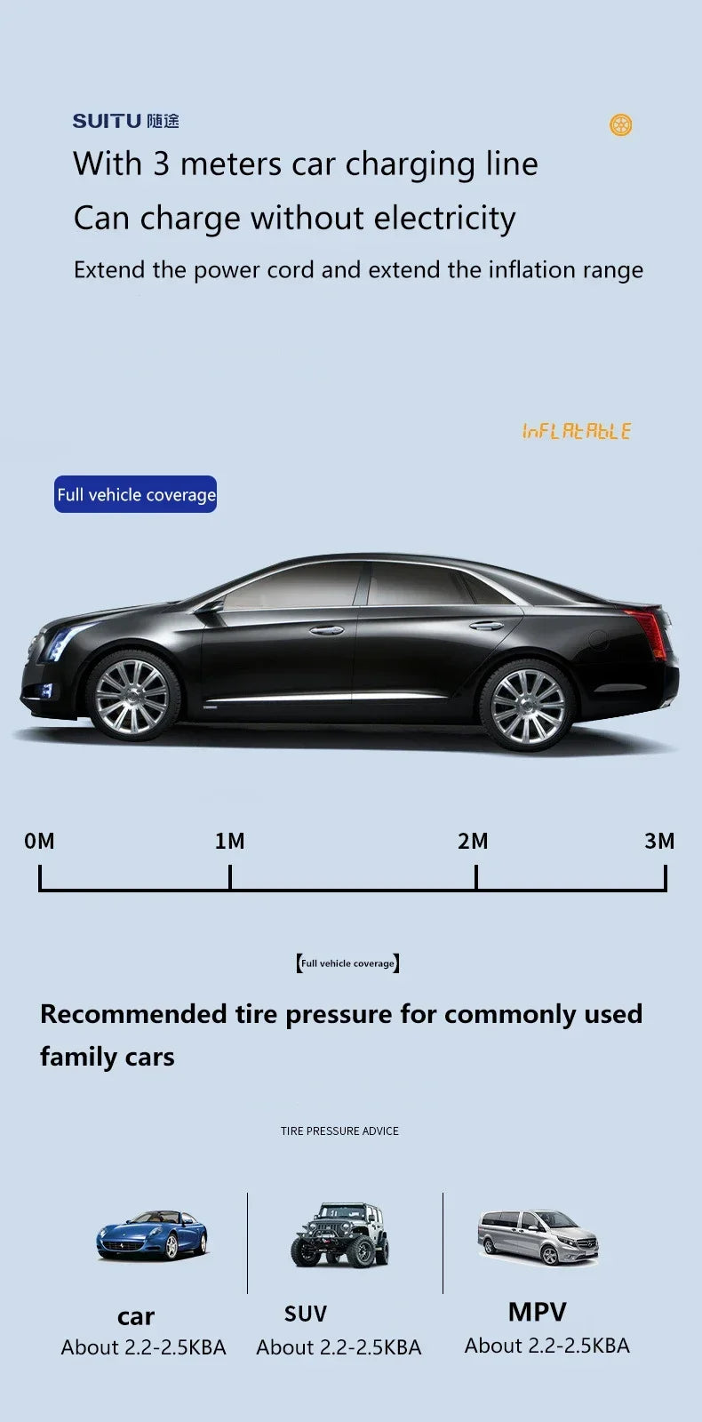 【Time】: Lithium battery fully charged Working time: about 20min, fully charged can inflate 2 tires